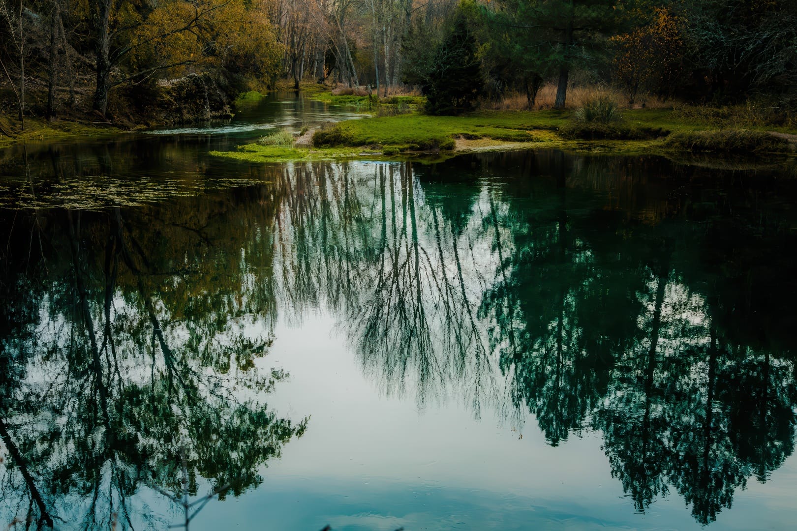 “Nacimiento de aguas cristalinas que brotan de una cavidad subterránea, creando un paraje mágico y protegido, ideal para paseos y naturaleza.”