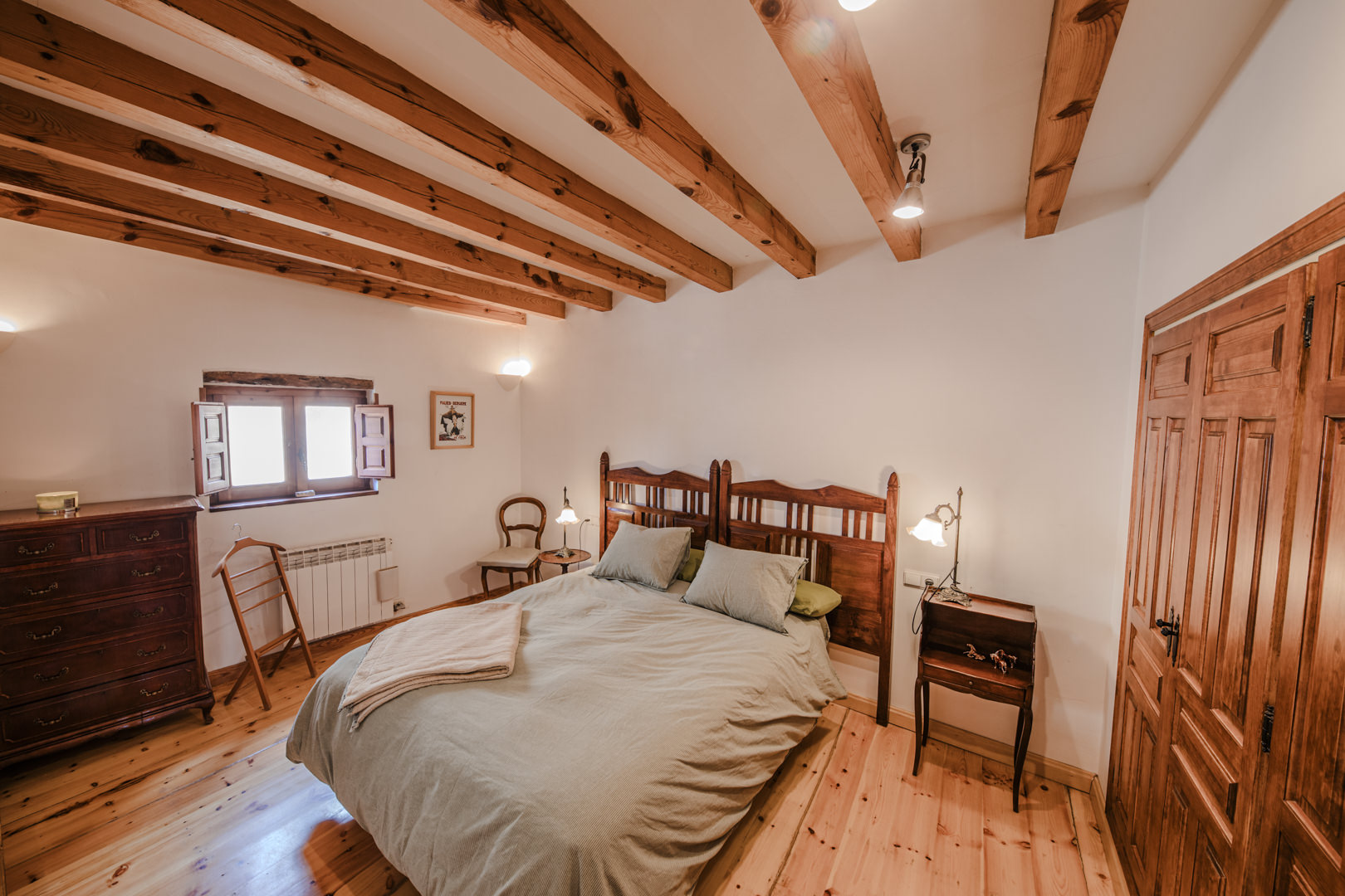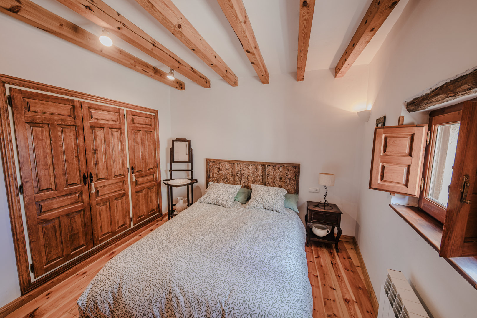 Sigue el mismo estilo de madera tradicional, tan propio de la zona y también cuenta con armarios empotrados. Orientada al sur. Desde su ventana hacia el oeste se disfrutan unas vistas únicas al histórico Valle de la Sangre de Calatañazor.